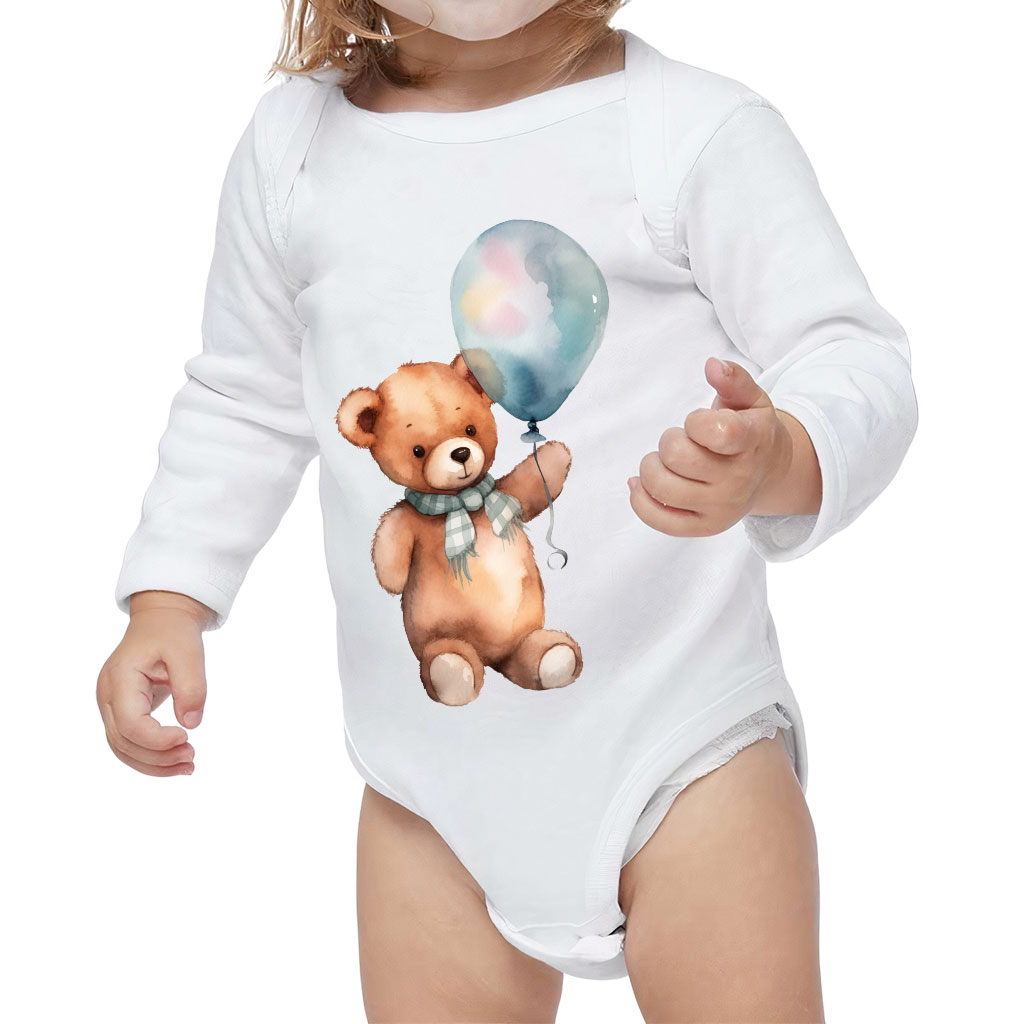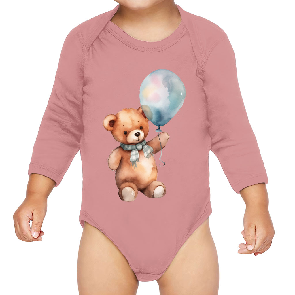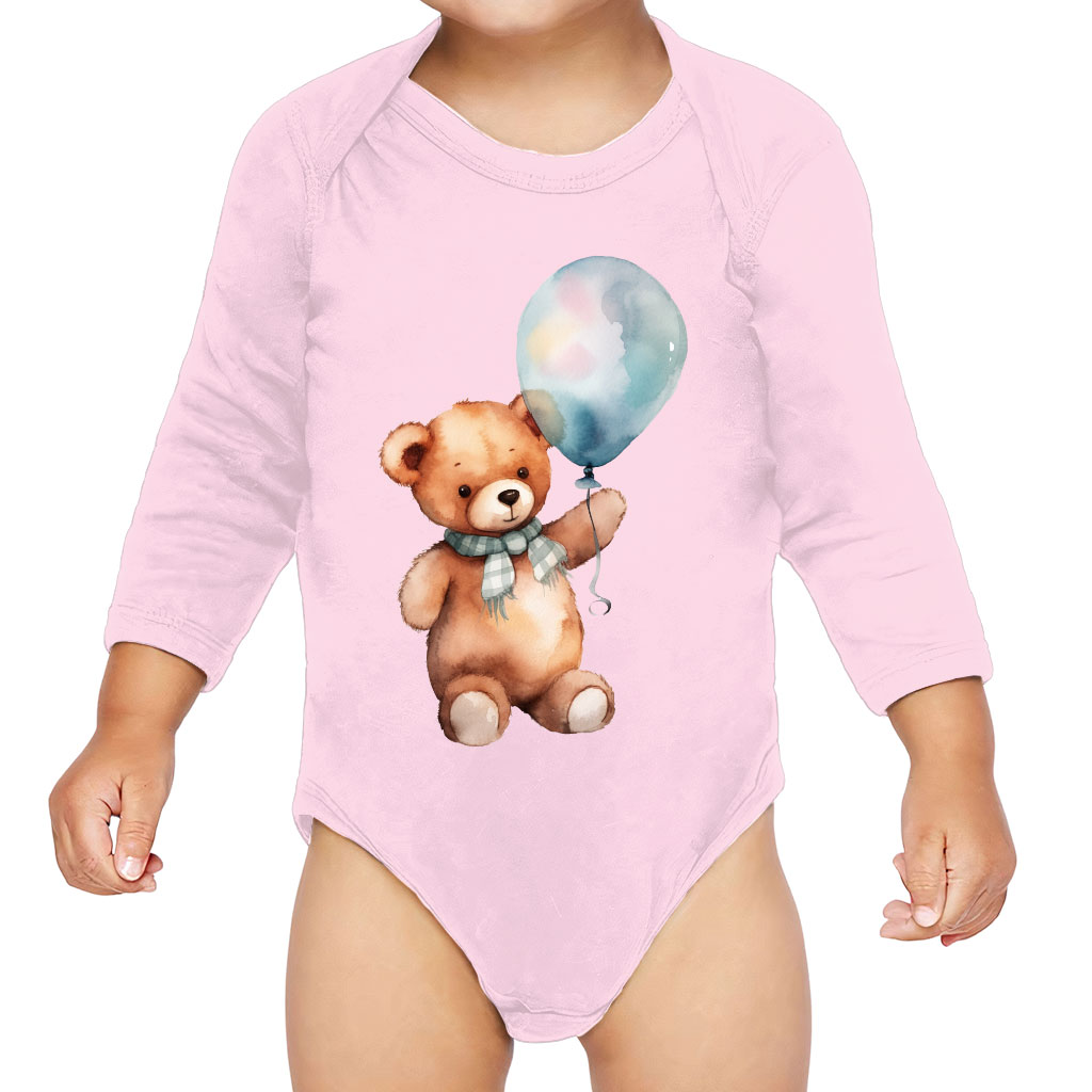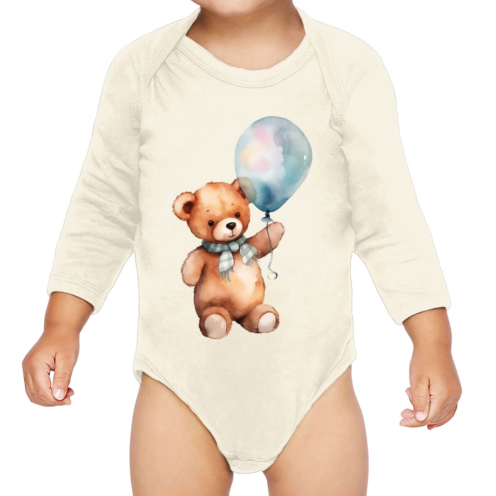 Teddy Bear and Balloon Baby Long Sleeve One-Piece – Art Baby Long Sleeve Bodysuit – Funny Baby One-Piece