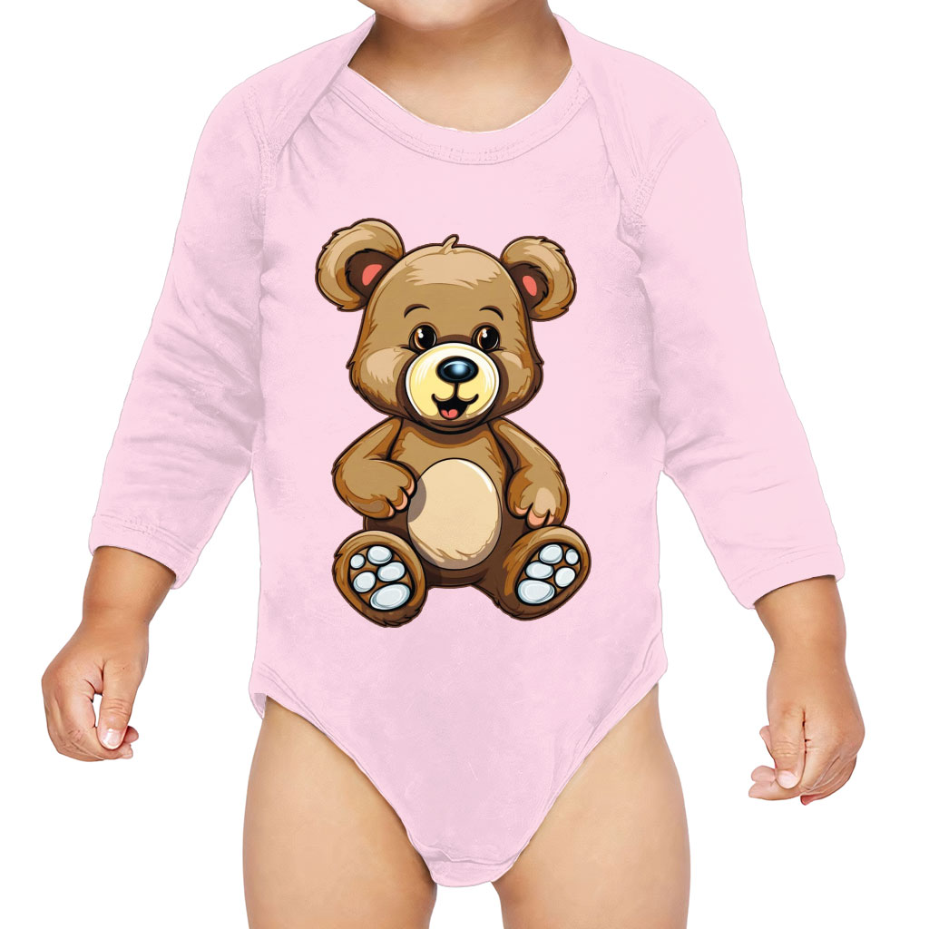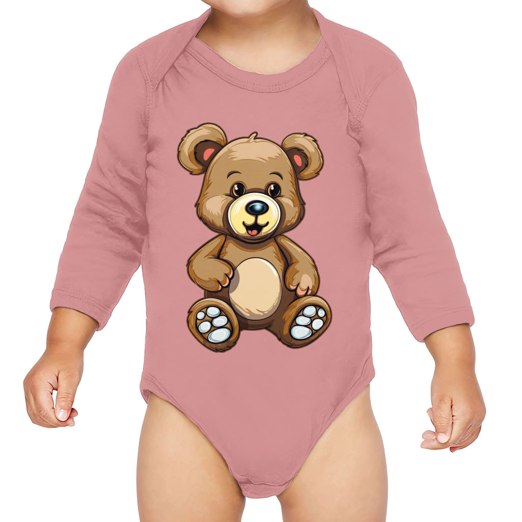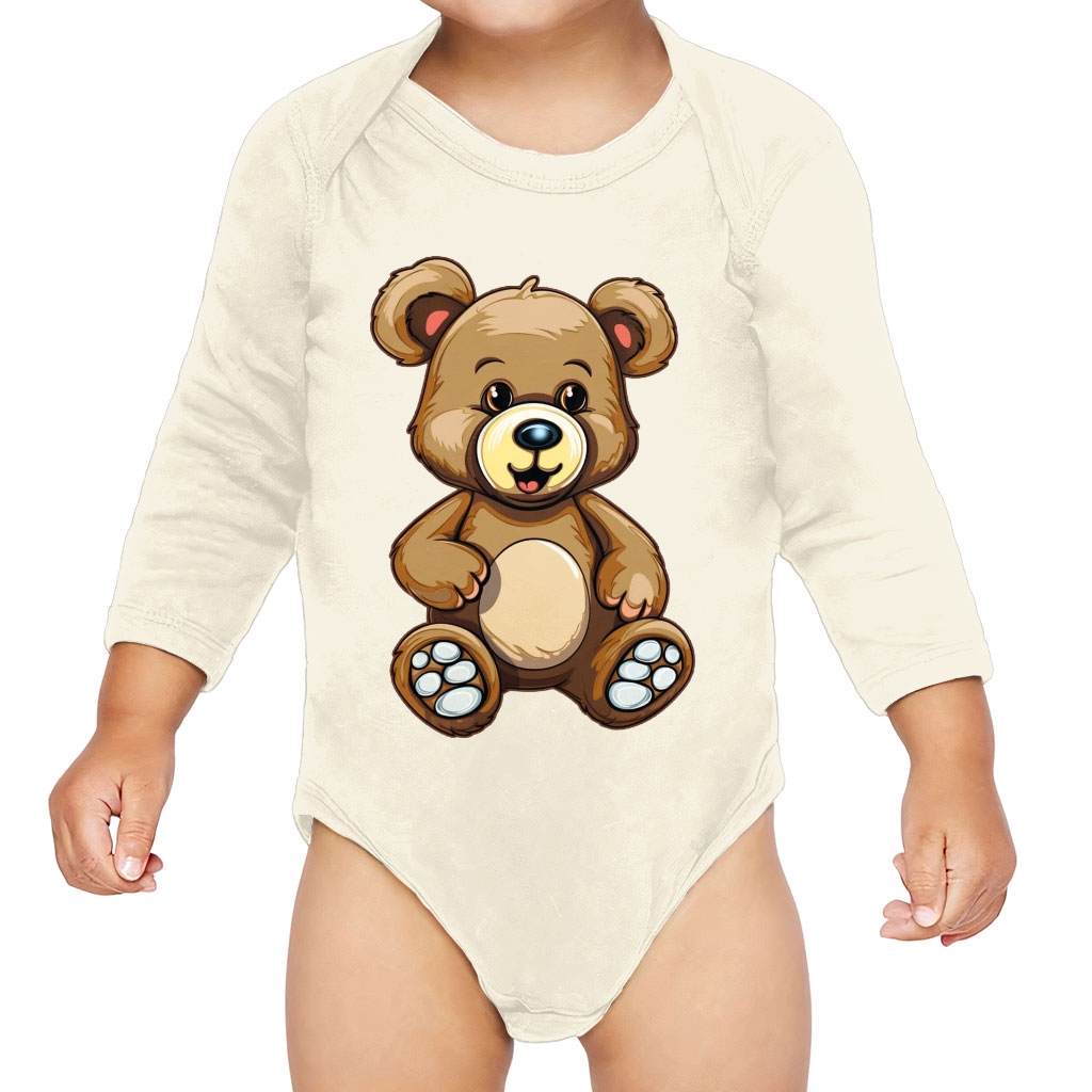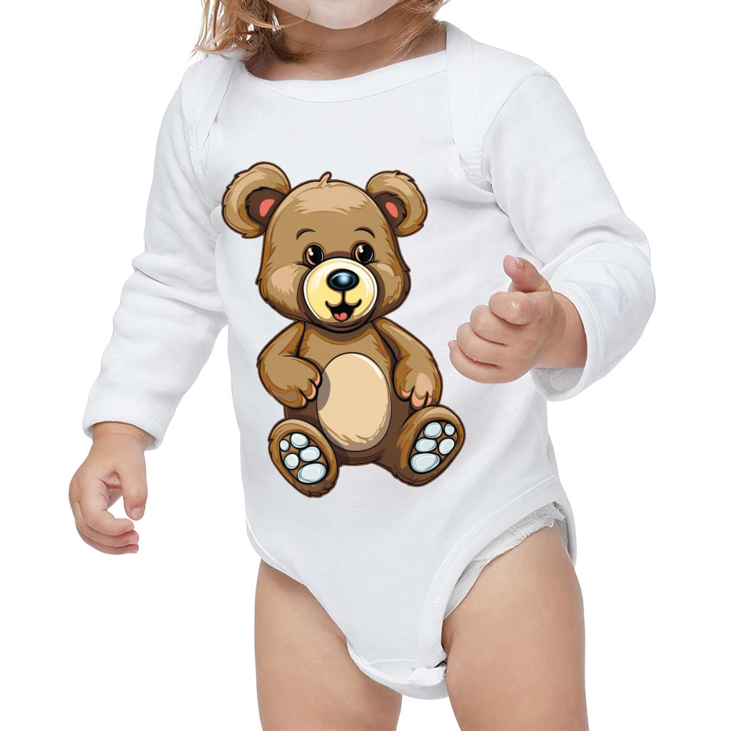 Teddy Bear Print Baby Long Sleeve One-Piece – Funny Baby Long Sleeve Bodysuit – Print Baby One-Piece
