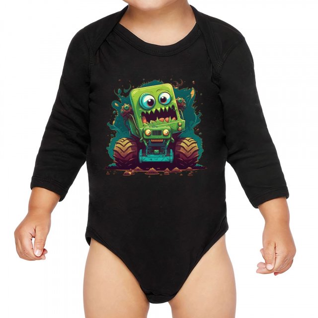 Cartoon Car Baby Long Sleeve One-Piece – Funny Baby Long Sleeve Bodysuit – Monster Truck Baby One-Piece