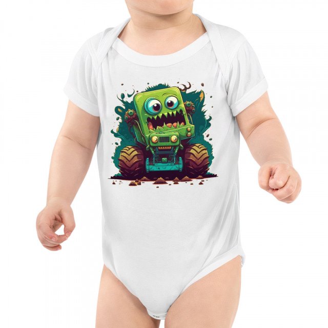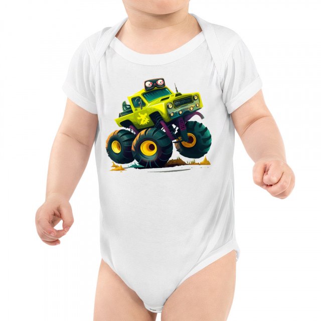 Cartoon Truck Baby Jersey One-Piece – Monster Truck Baby Bodysuit – Art Baby One-Piece