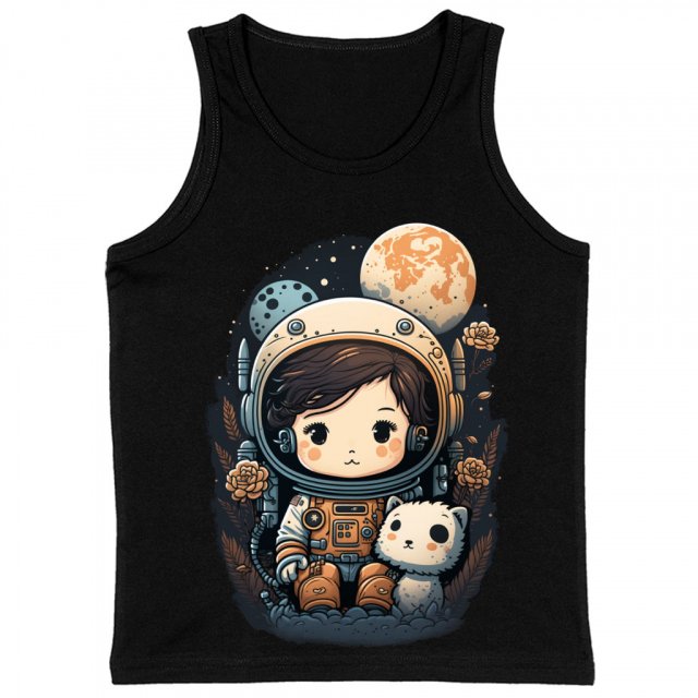 Astronaut Graphic Kids’ Jersey Tank – Kawaii Sleeveless T-Shirt – Themed Kids’ Tank Top