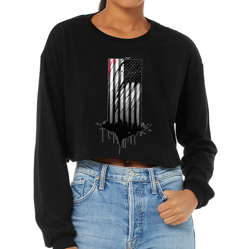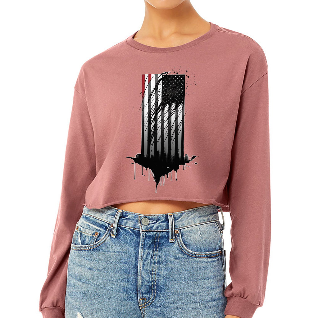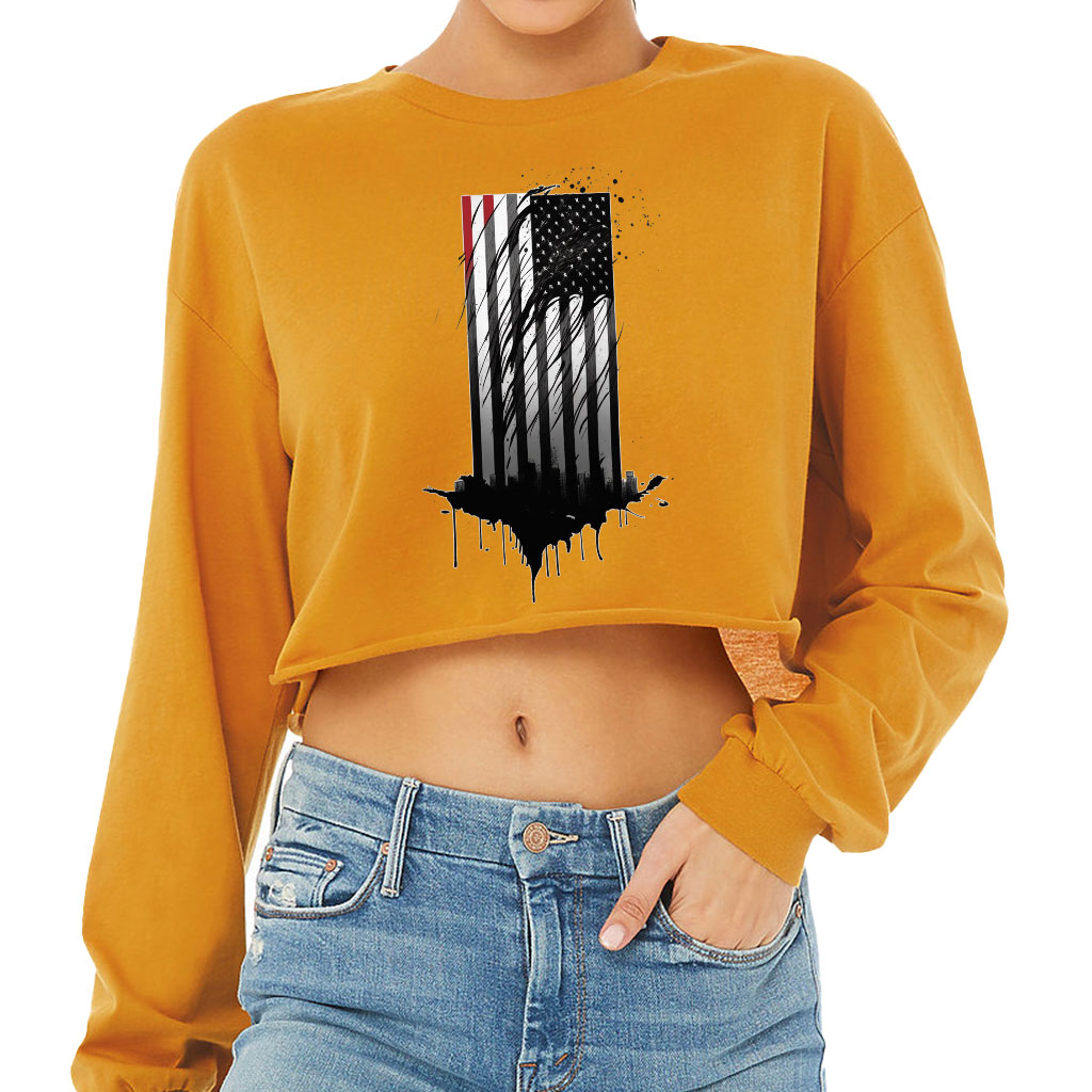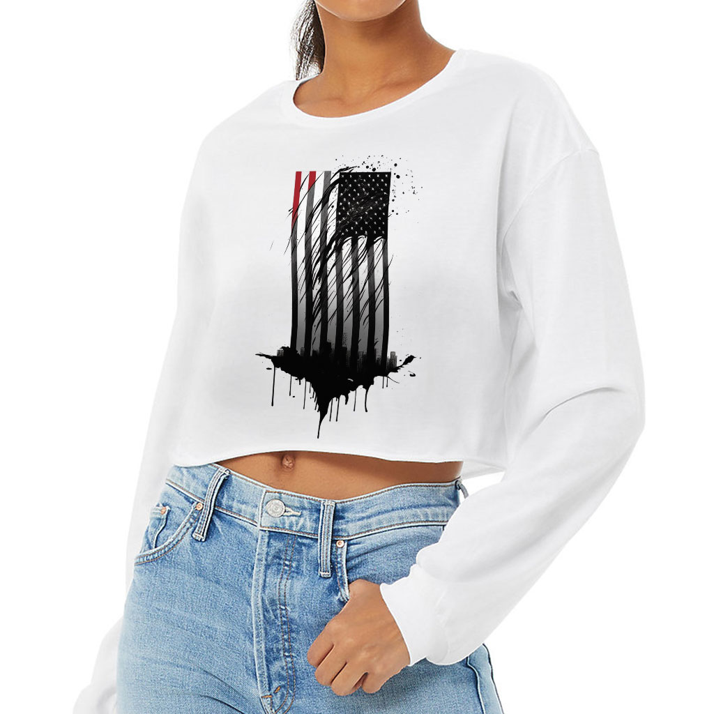 USA Flag Cropped Long Sleeve T-Shirt – America Lovers Gifts – Unique Items