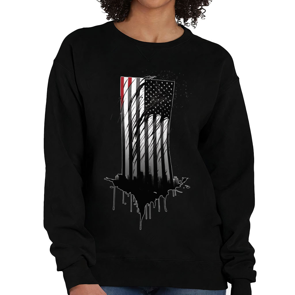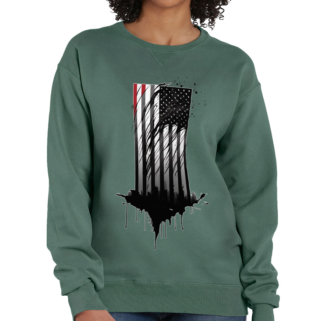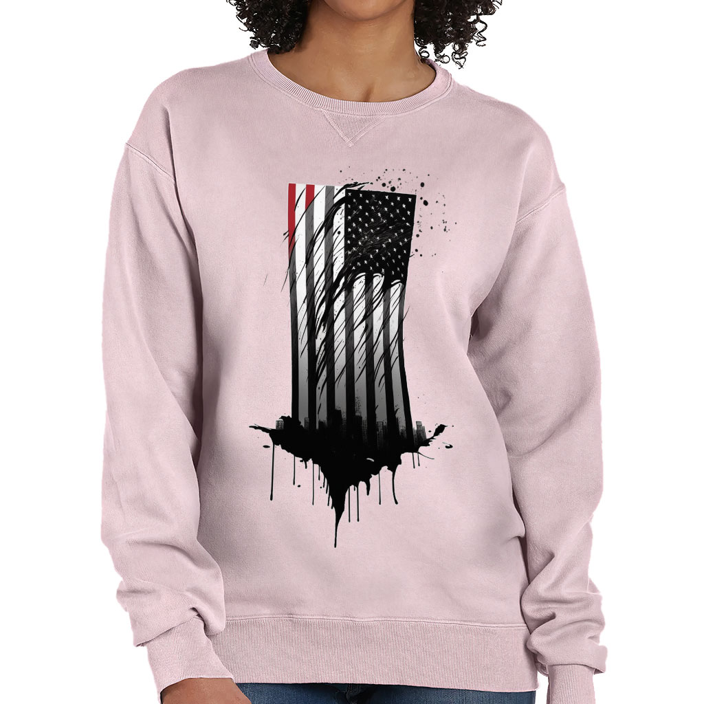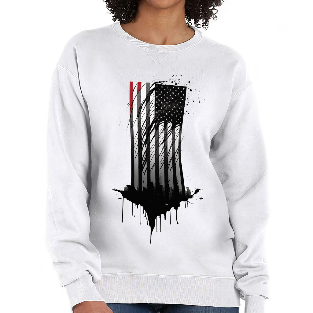 USA Flag Design Crewneck Sweatshirt – Cityscape Women’s Sweatshirt – Patriotic Sweatshirt