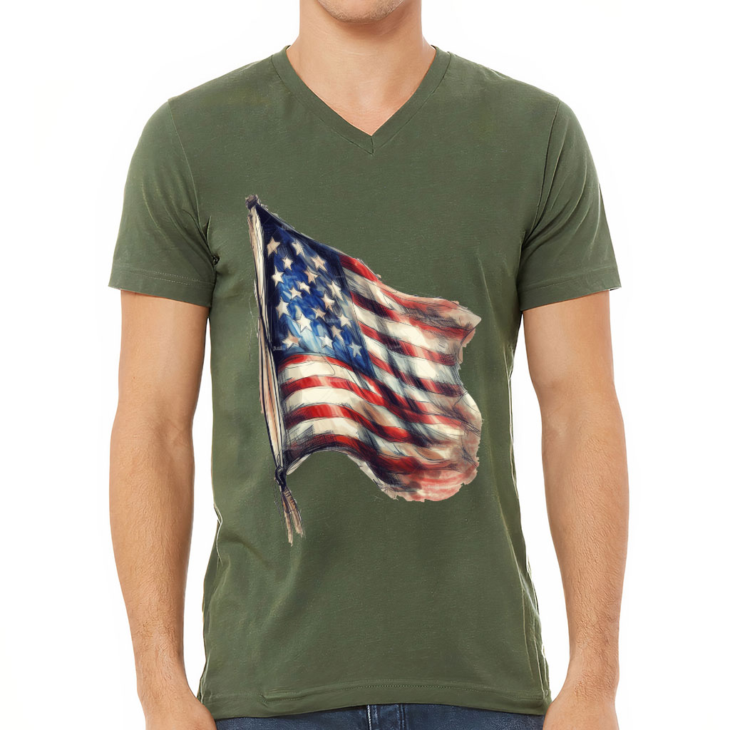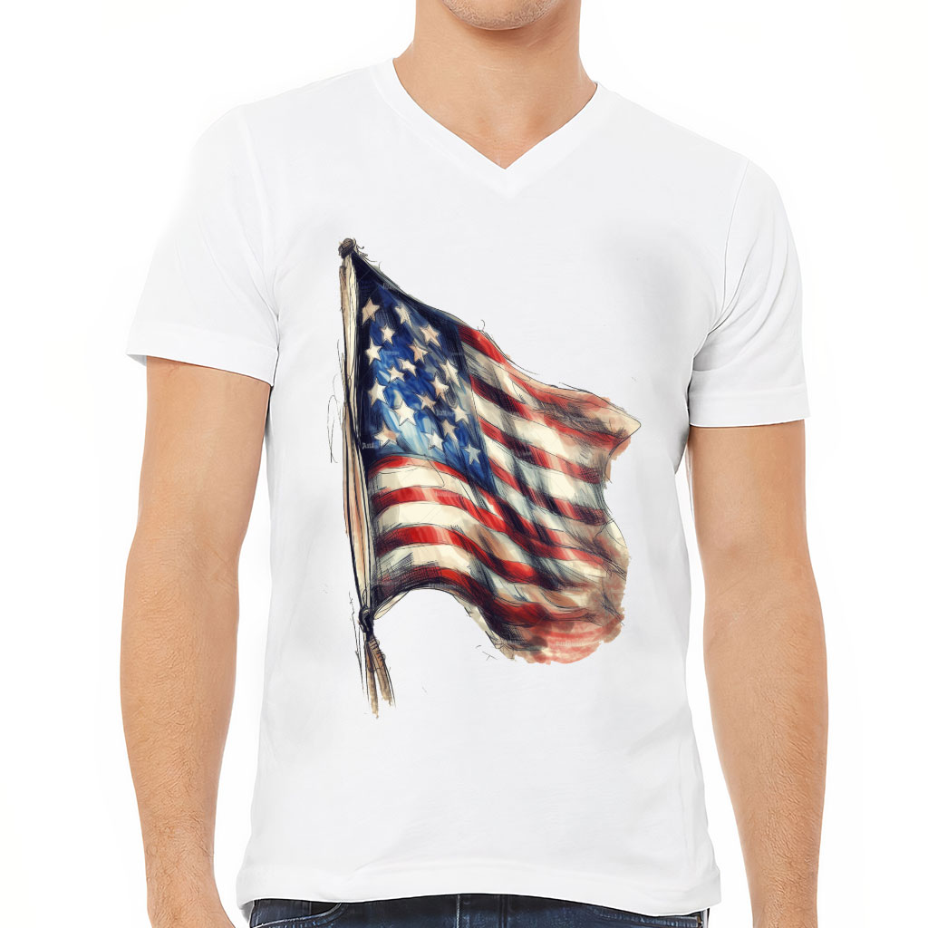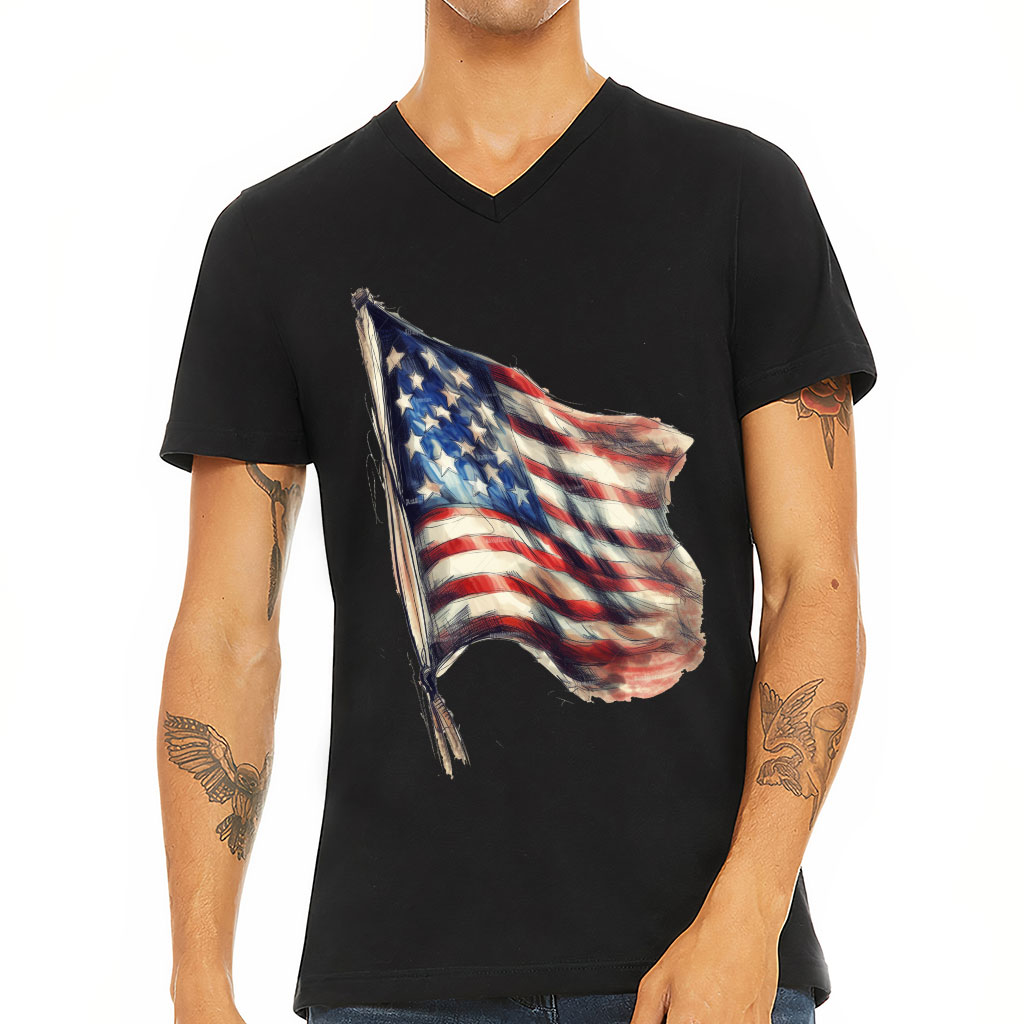 USA Flag Painting V-Neck T-Shirt – Patriotic T-Shirt – America V-Neck Tee