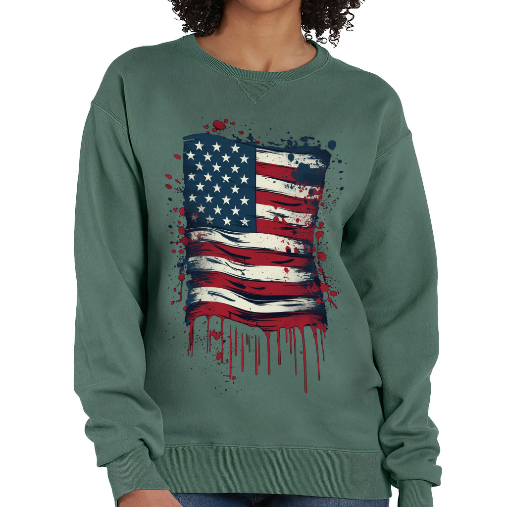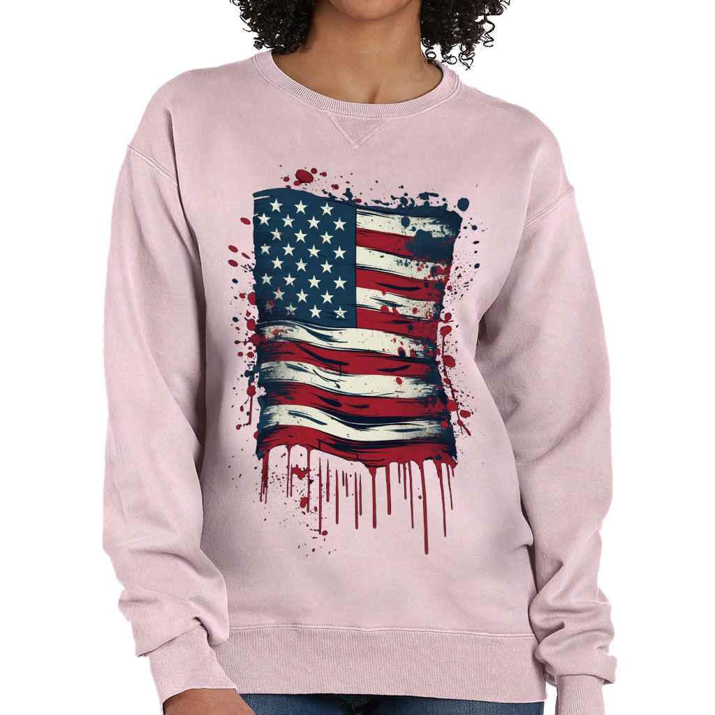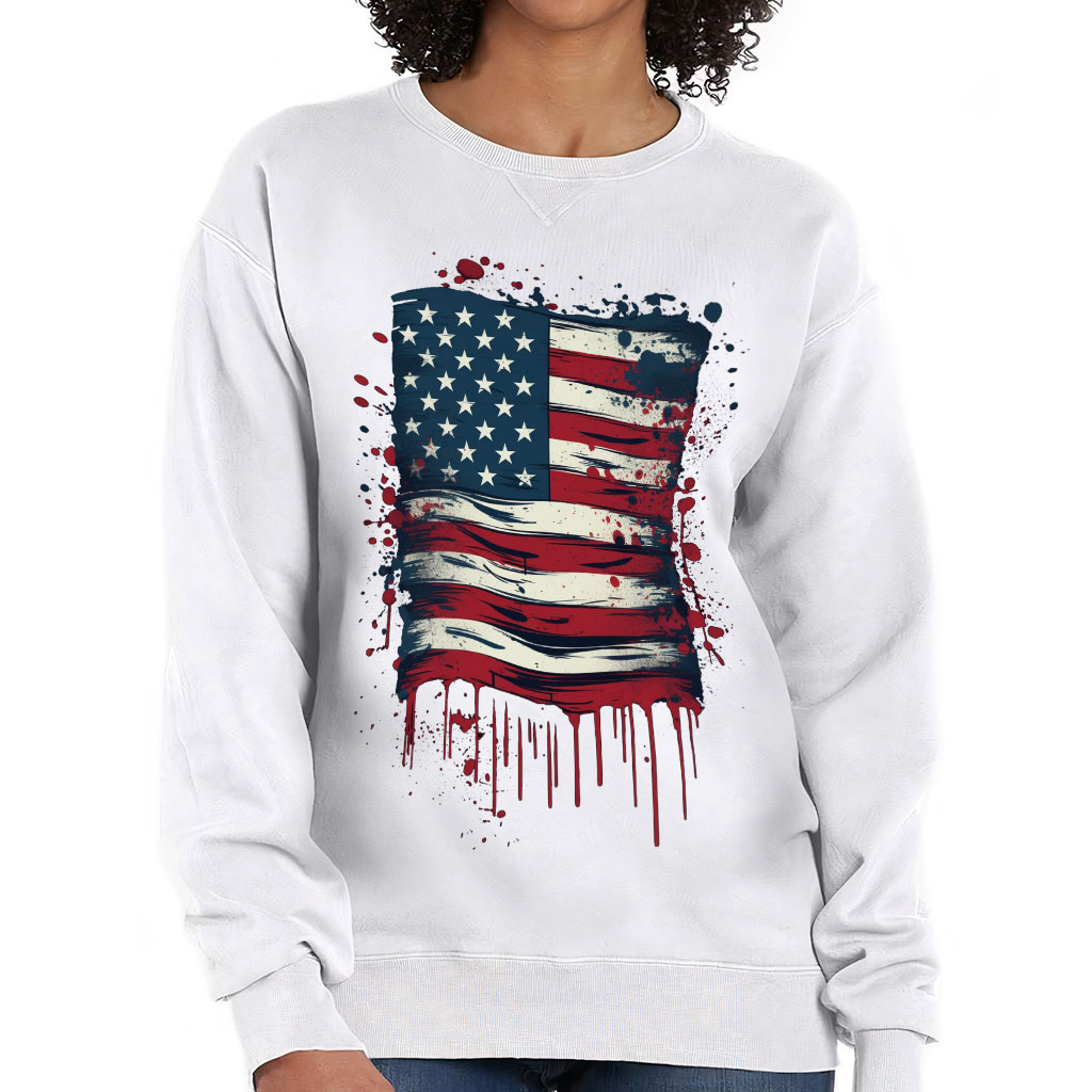 USA Flag Print Crewneck Sweatshirt – Patriotic Women’s Sweatshirt – Painting Sweatshirt