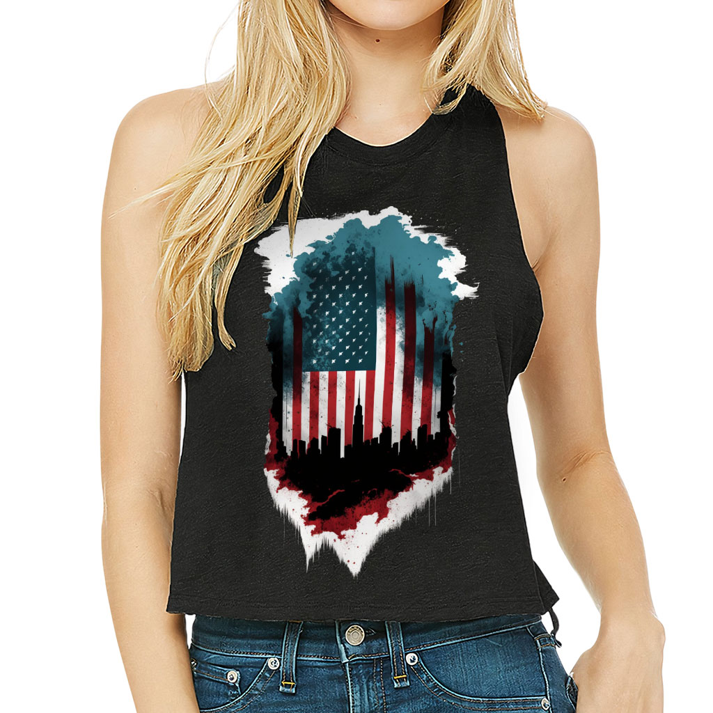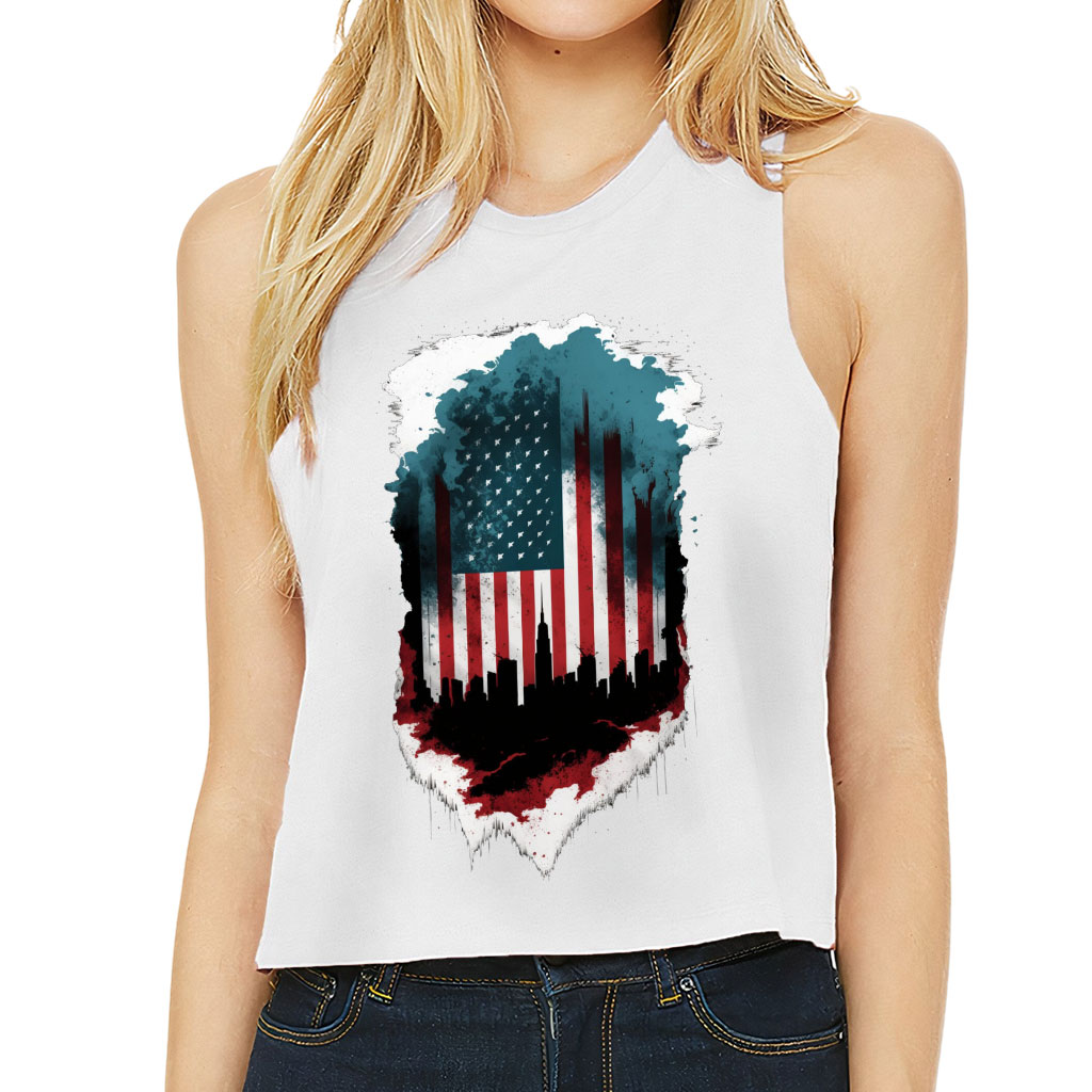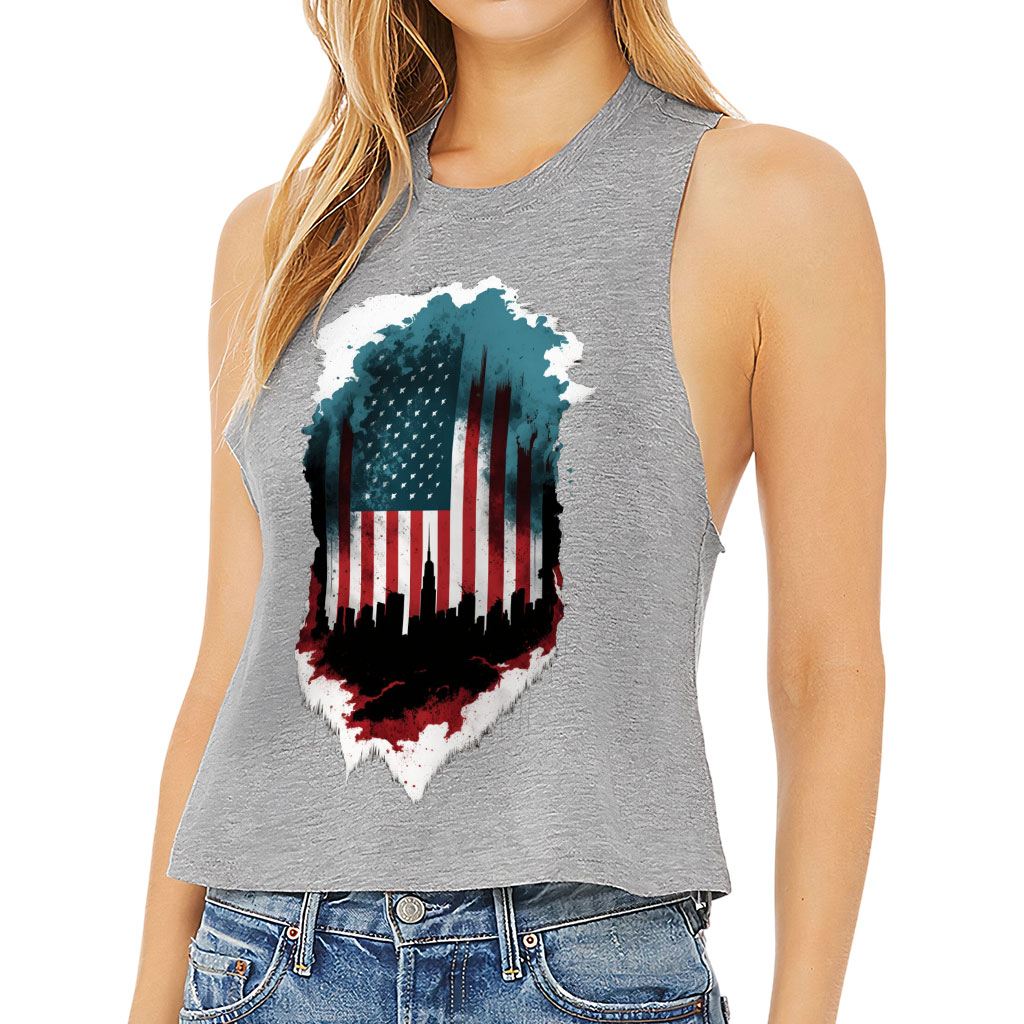 USA Flag Print Racerback Cropped Tank – American Themed Items – Unique Gifts