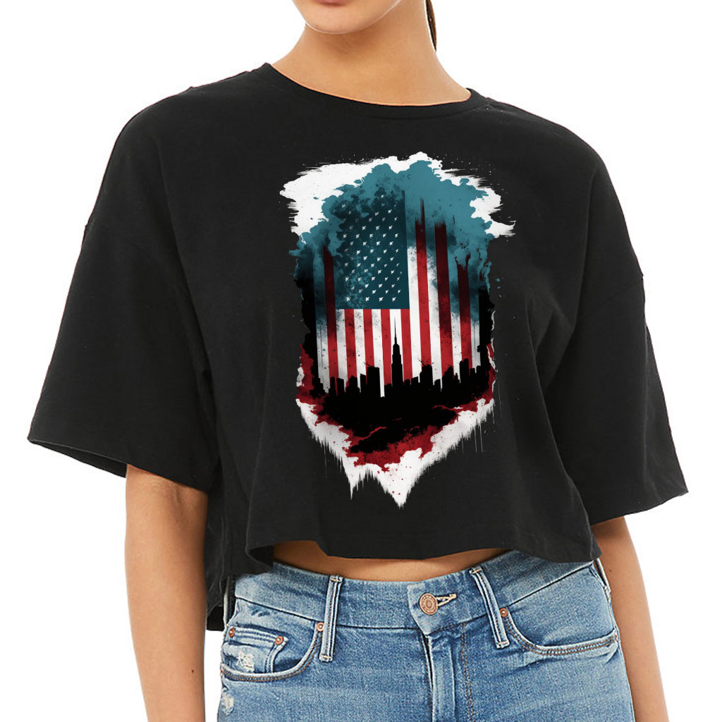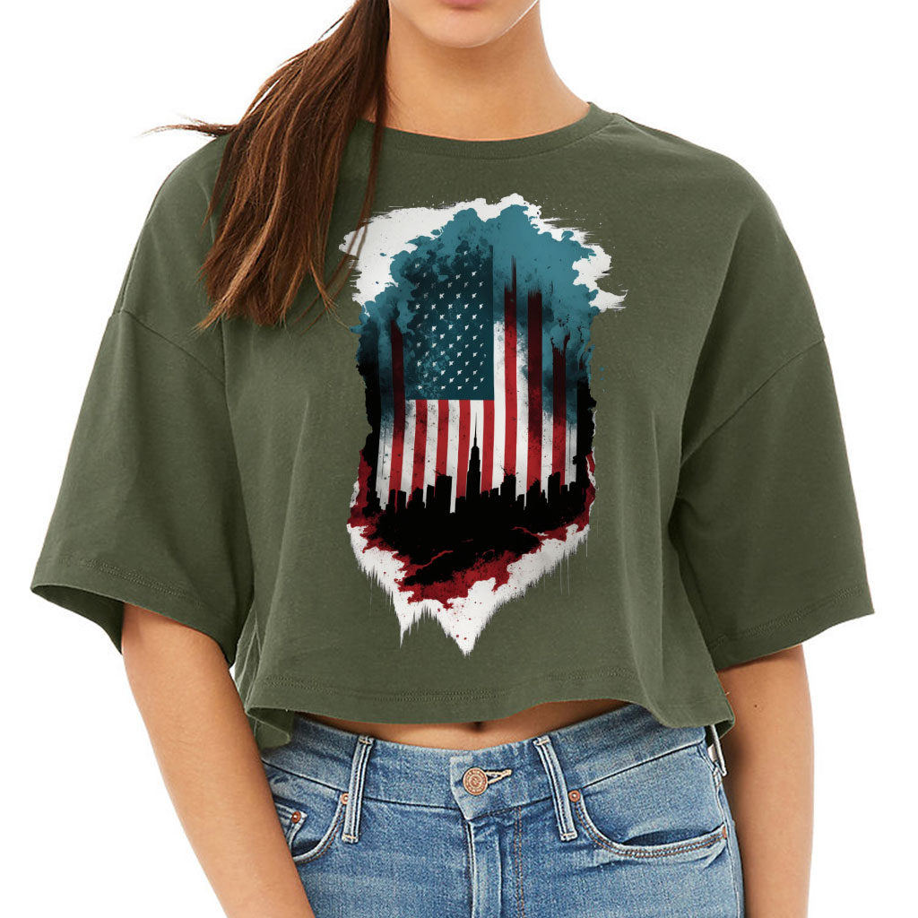 USA Flag Print Women’s Crop Tee Shirt – Unique Gifts – American Themed Items