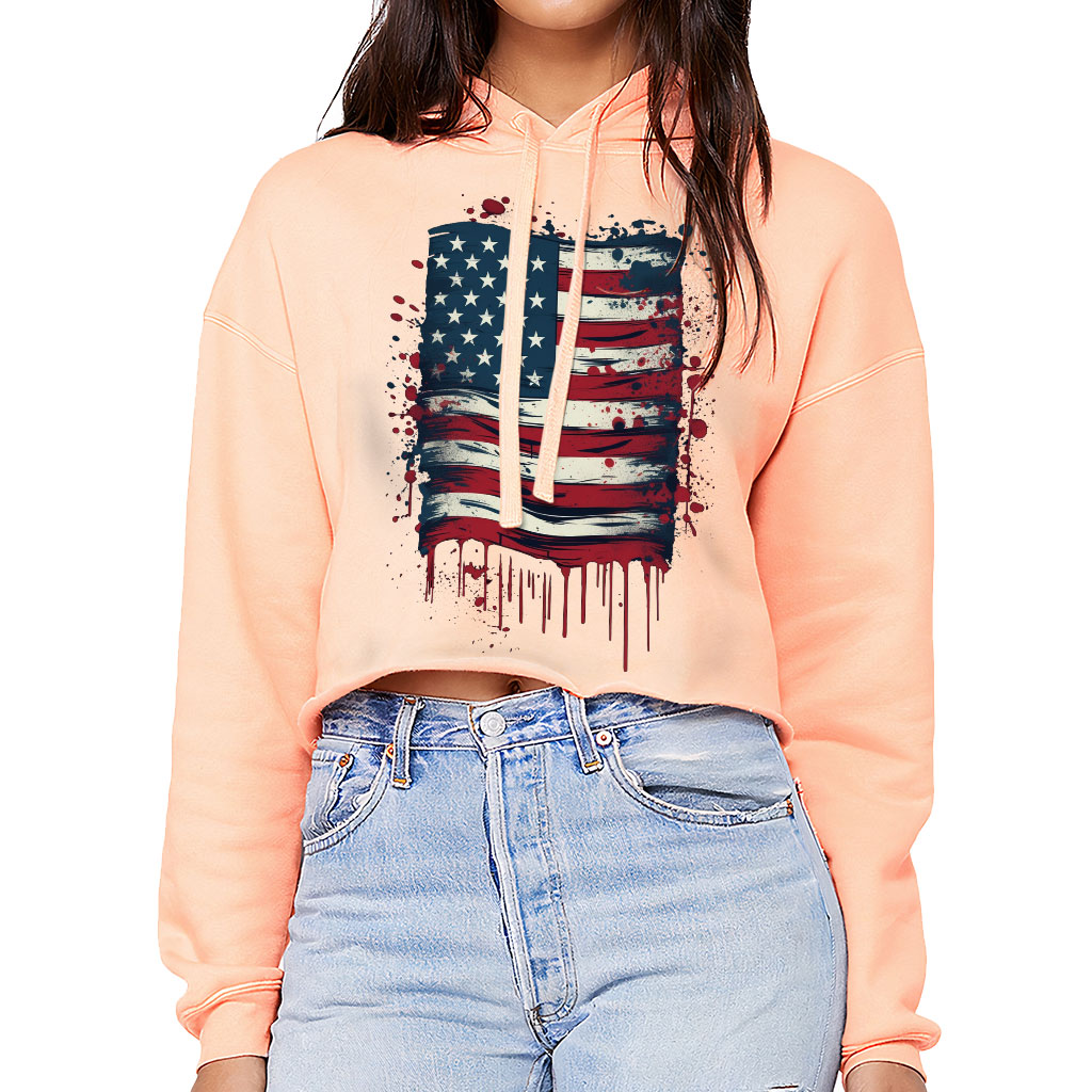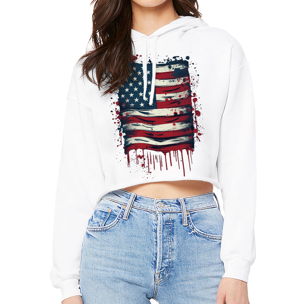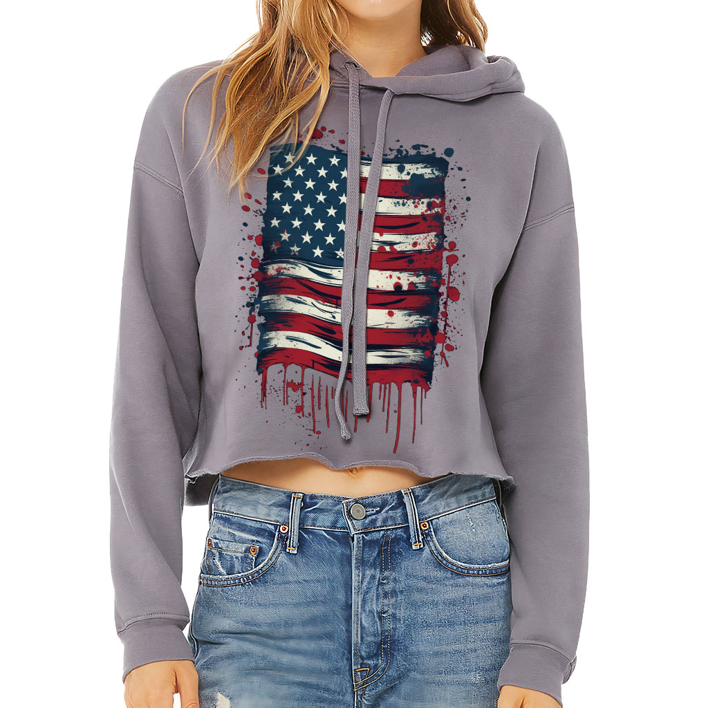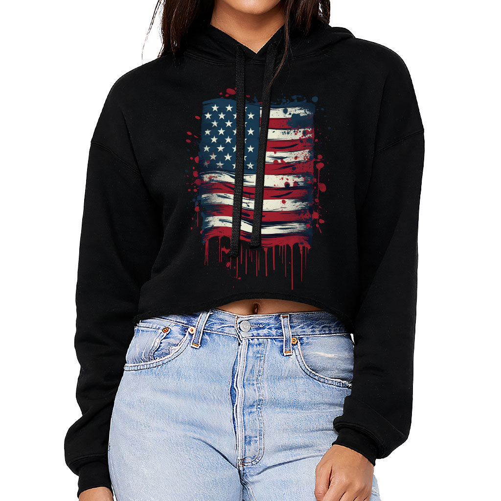 USA Flag Print Women’s Cropped Hoodie – Patriotic Cropped Hoodie – Painting Hooded Sweatshirt