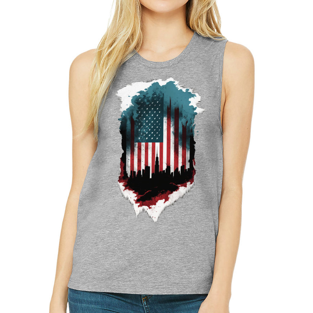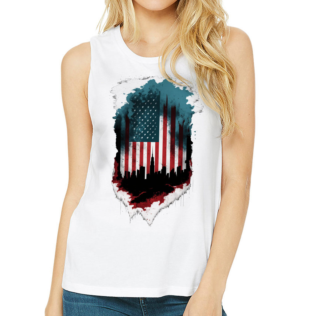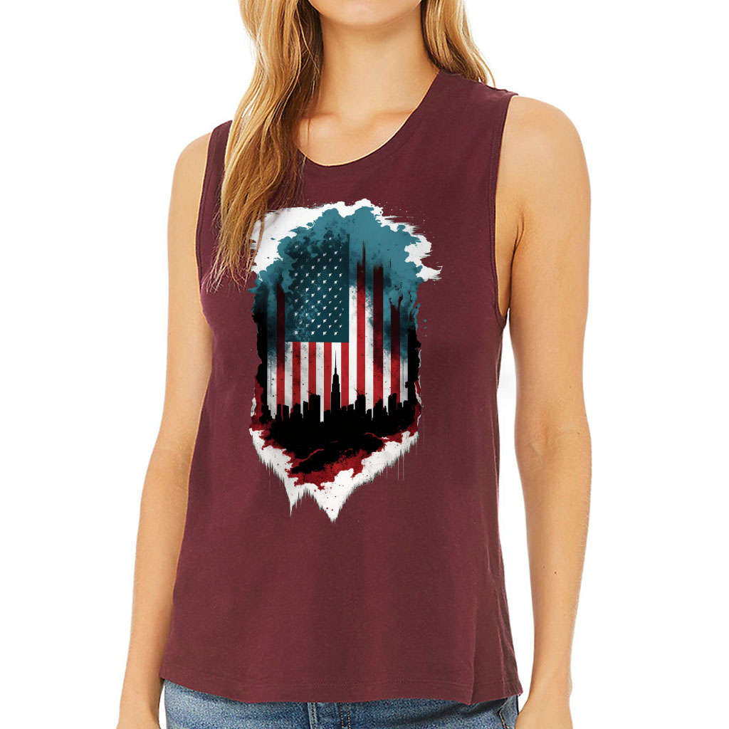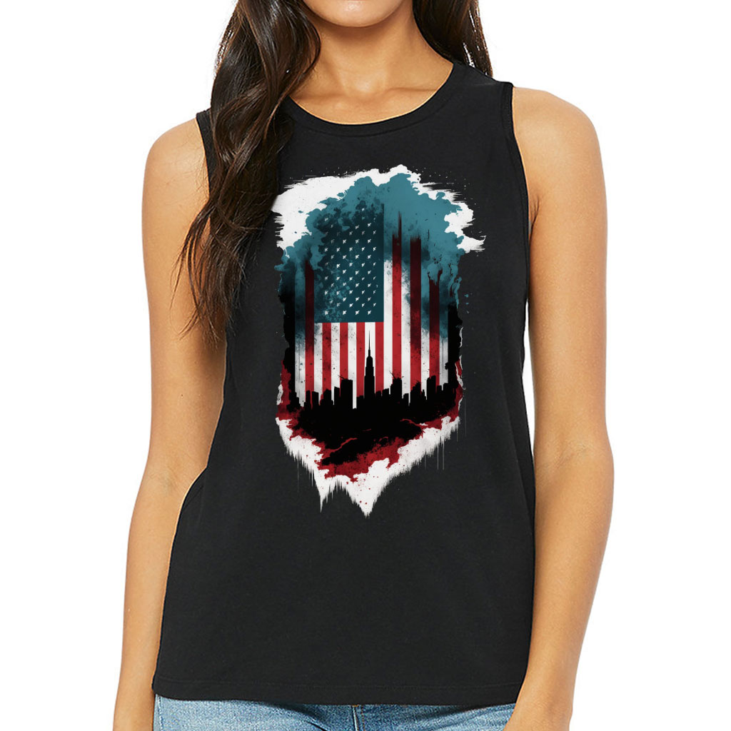 USA Flag Print Women’s Muscle Tank – American Themed Items – Unique Gifts