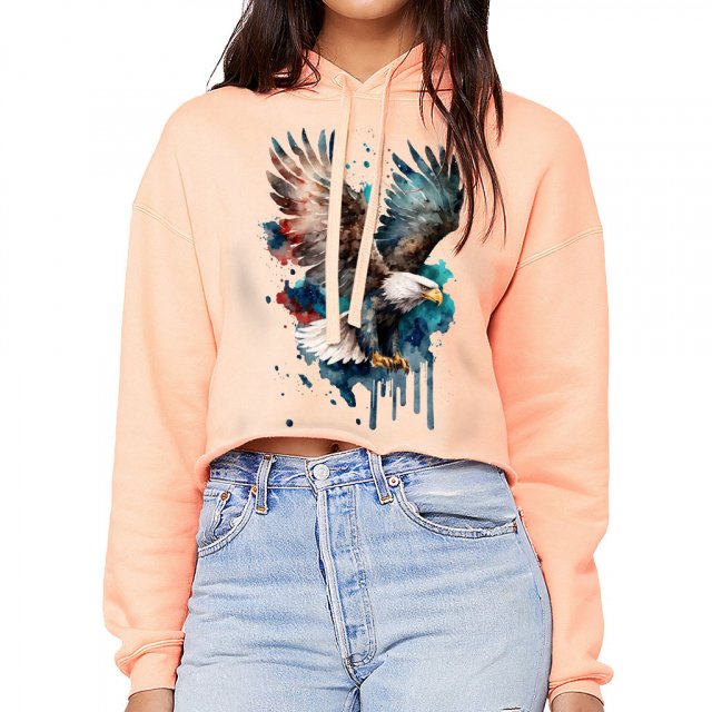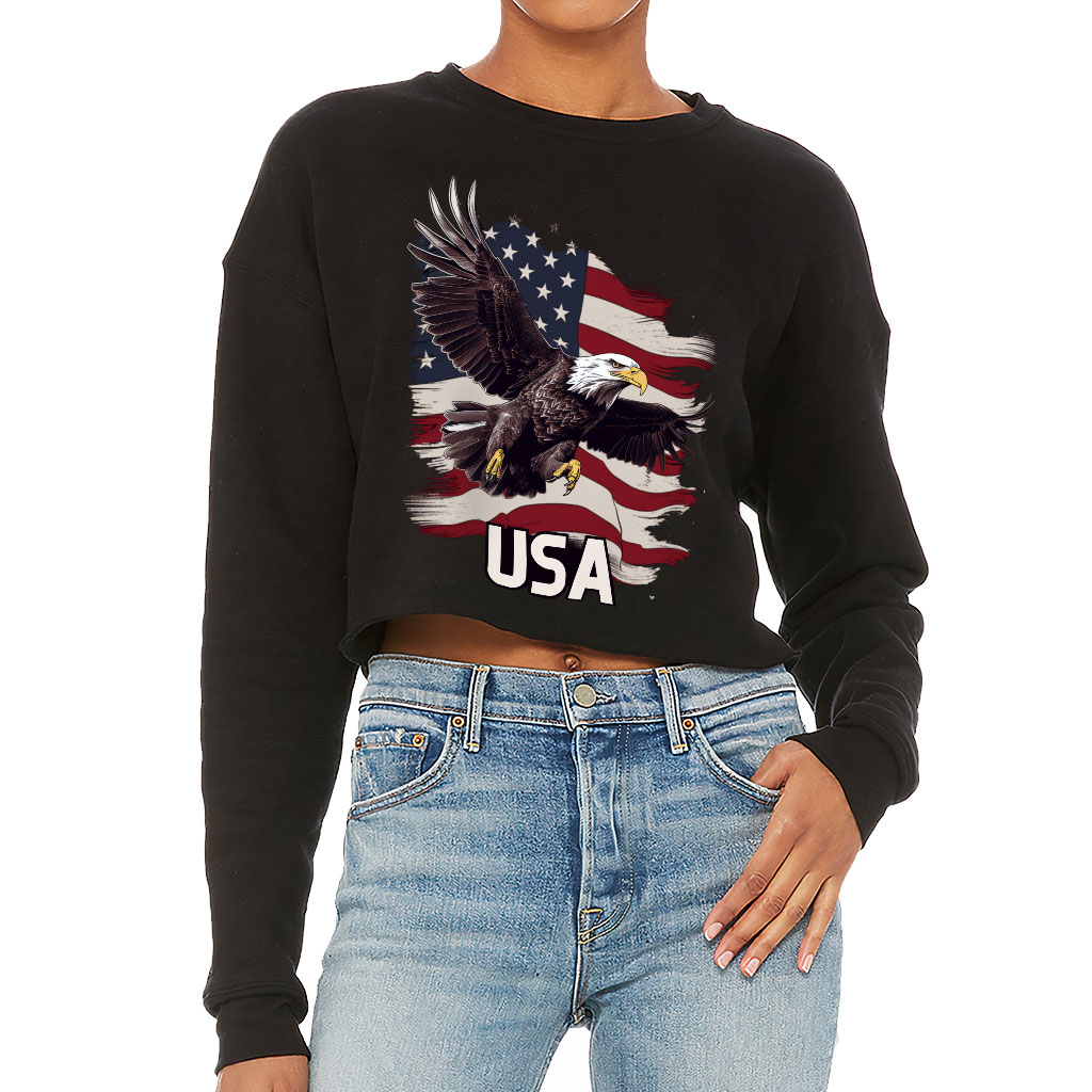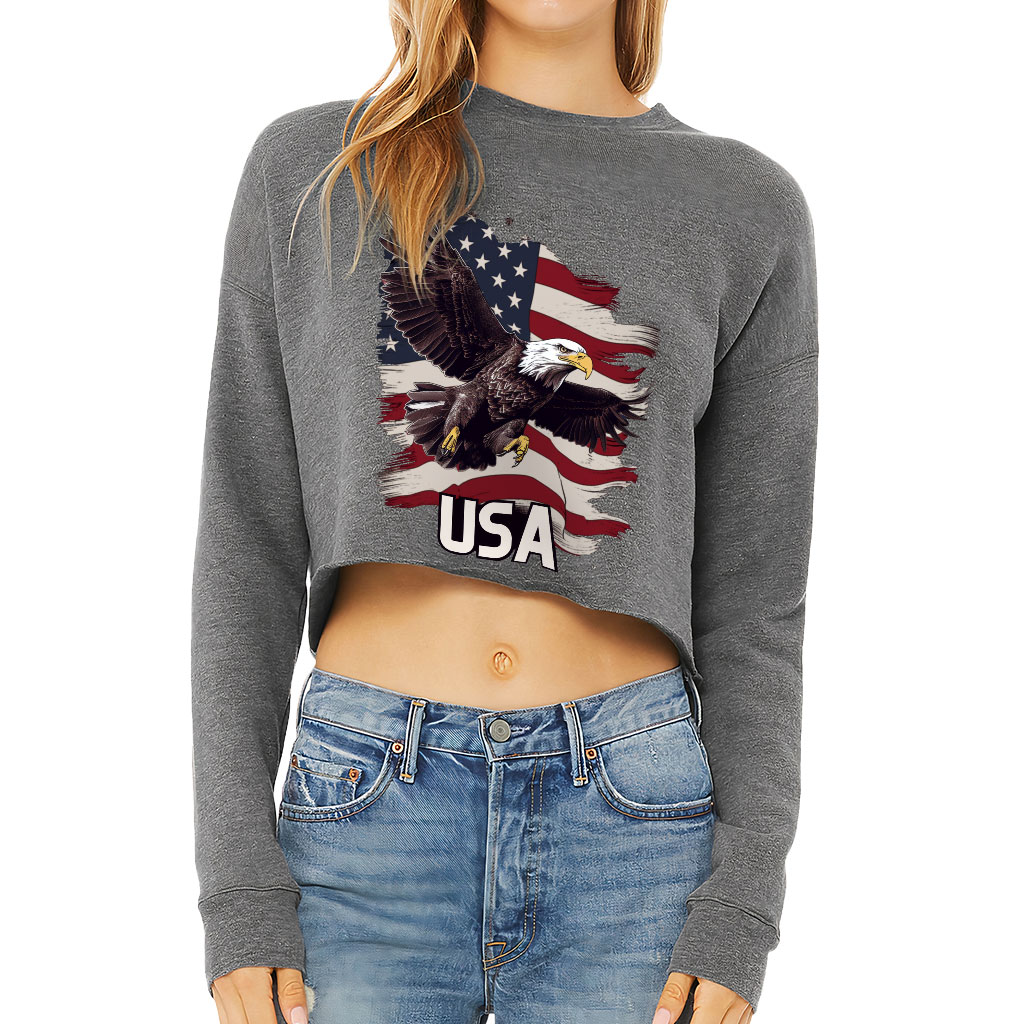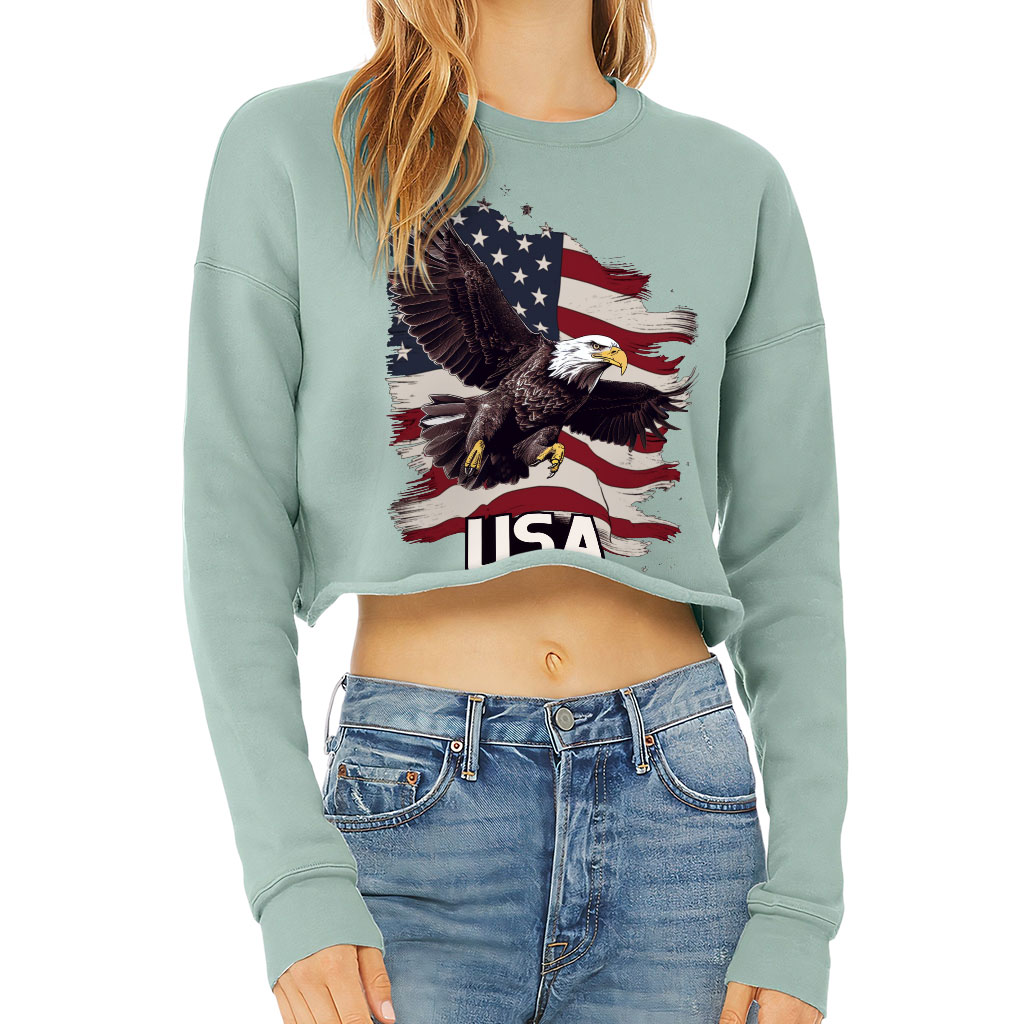 USA Print Cropped Sweatshirt – Eagle Women’s Sweatshirt – Unique Crop Crew Sweatshirt