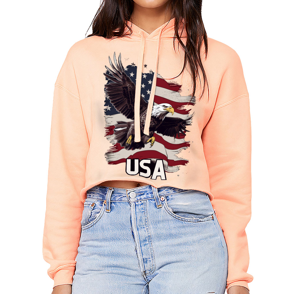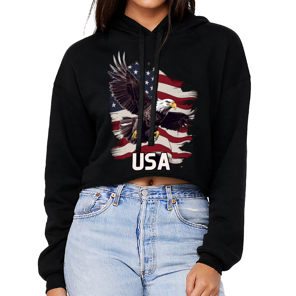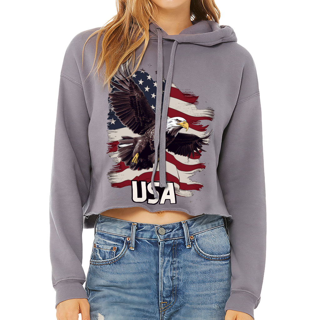 USA Print Women’s Cropped Hoodie – Eagle Cropped Hoodie – Unique Hooded Sweatshirt