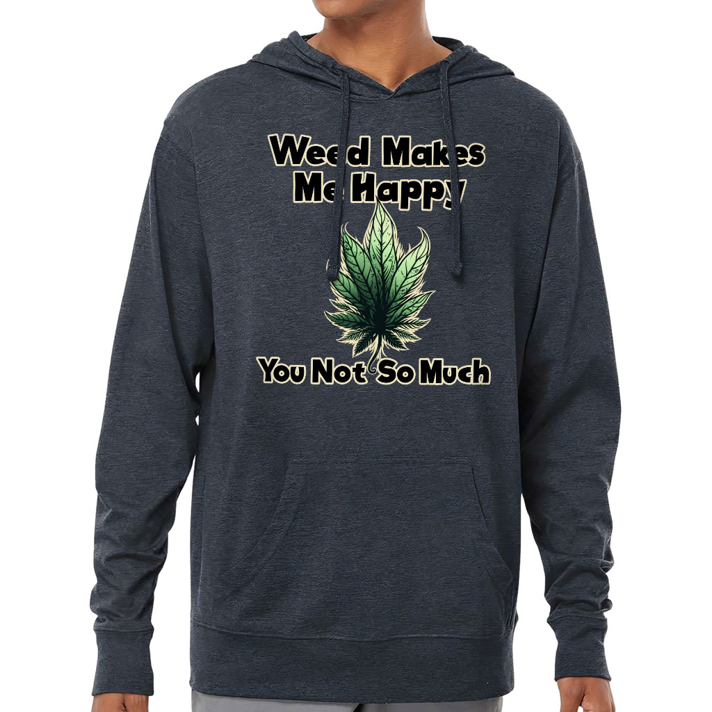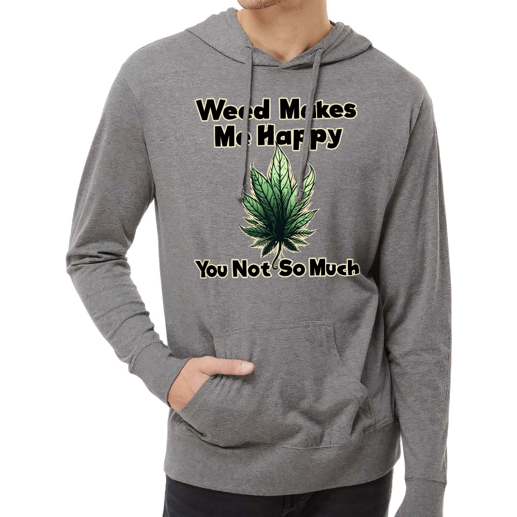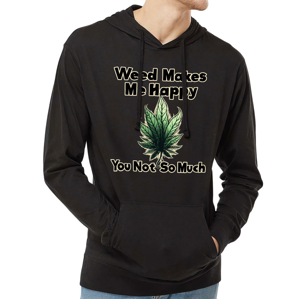 Weed Makes Me Happy Lightweight Jersey Hoodie – Printed Hooded Pullover – Leaf Hoodie