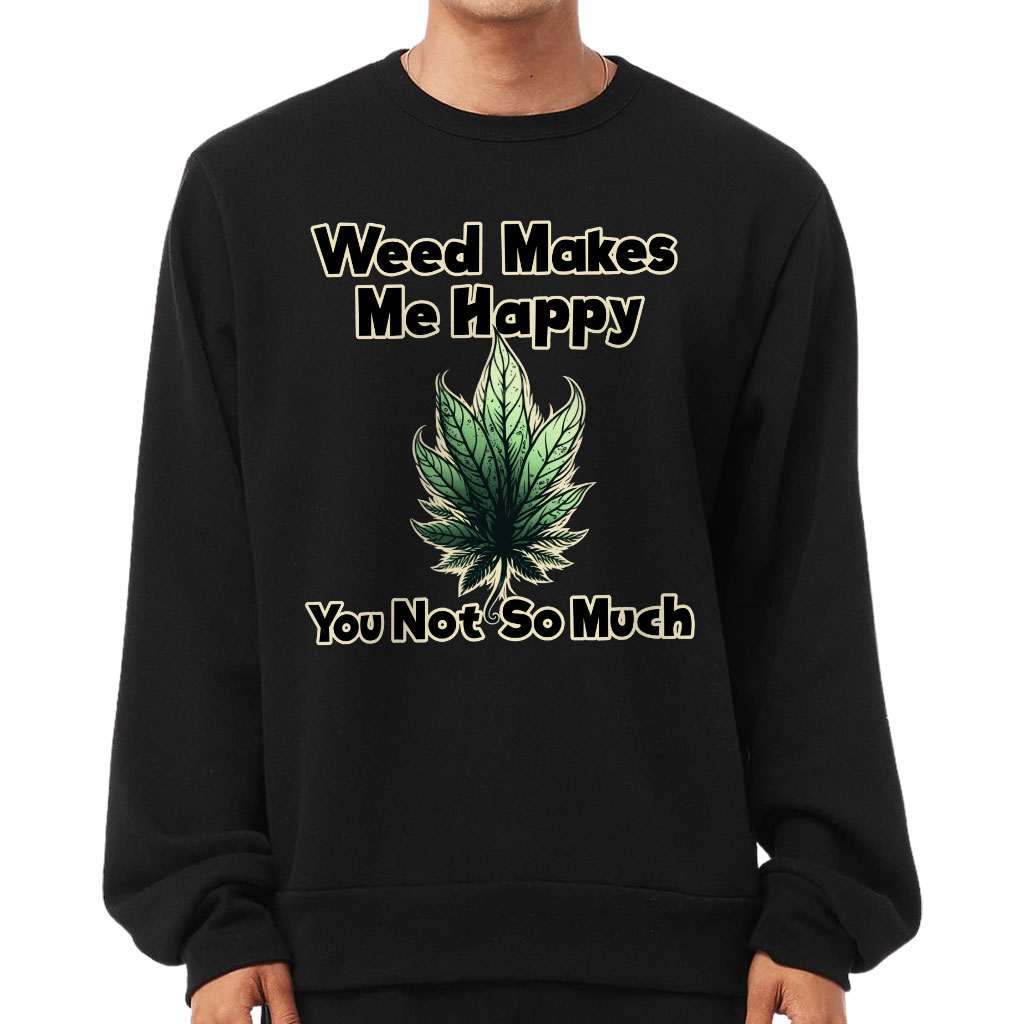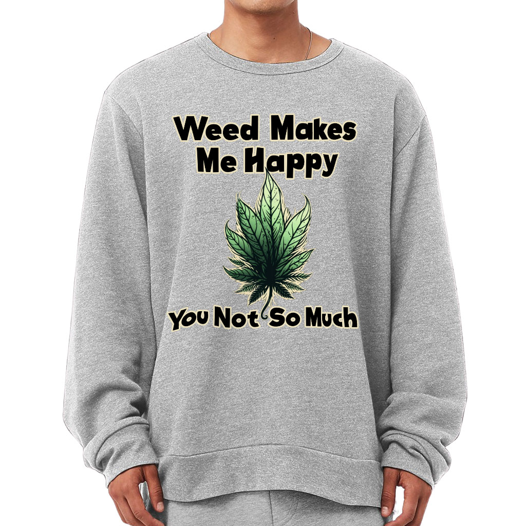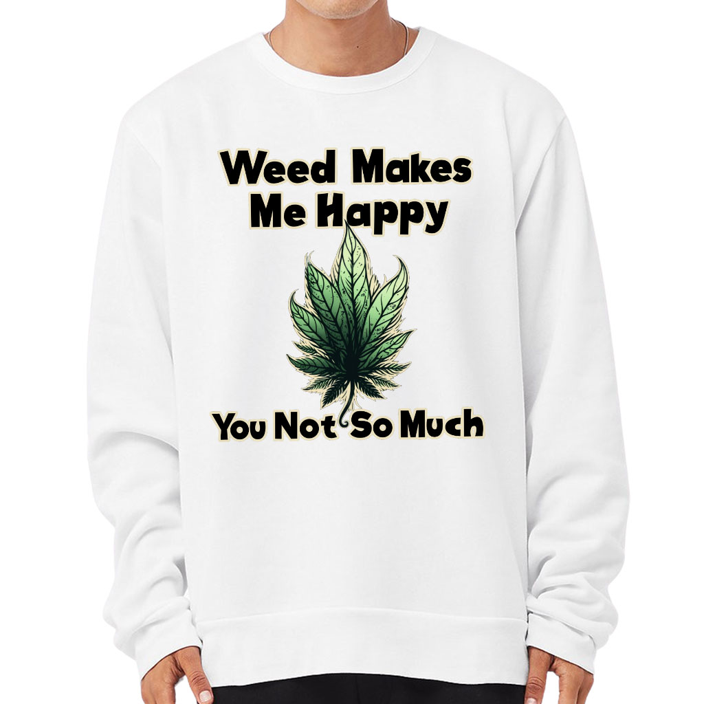 Weed Makes Me Happy Sponge Fleece Sweatshirt – Printed Classic Sweatshirt – Leaf Sweatshirt
