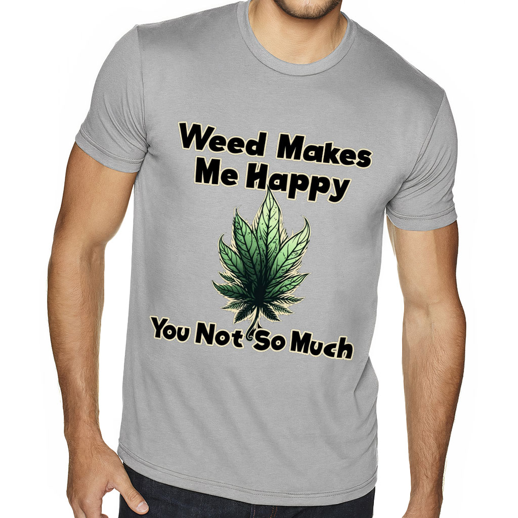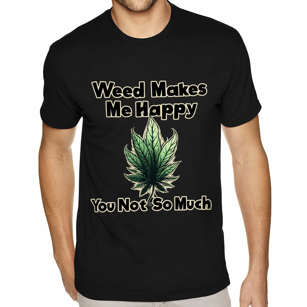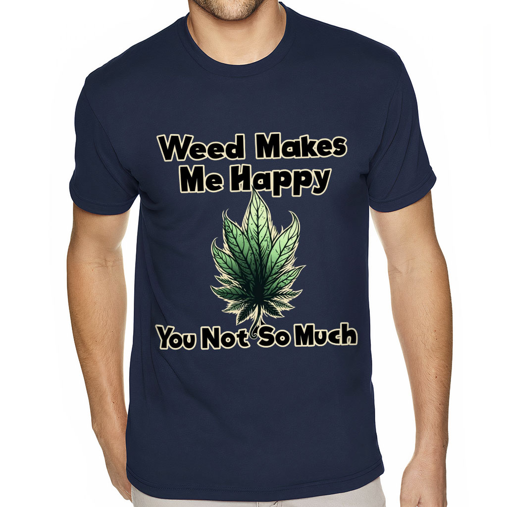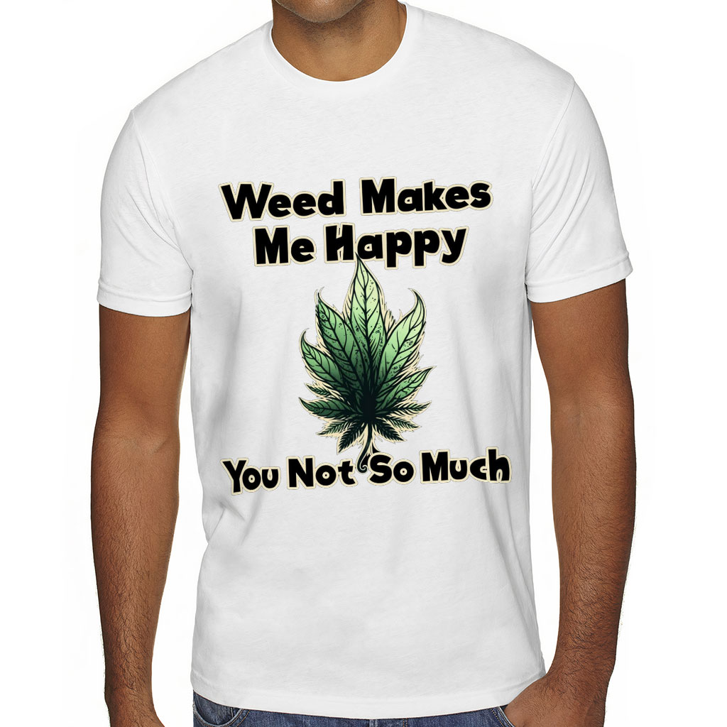 Weed Makes Me Happy Sueded T-Shirt – Funny T-Shirt – Text Design Sueded Tee
