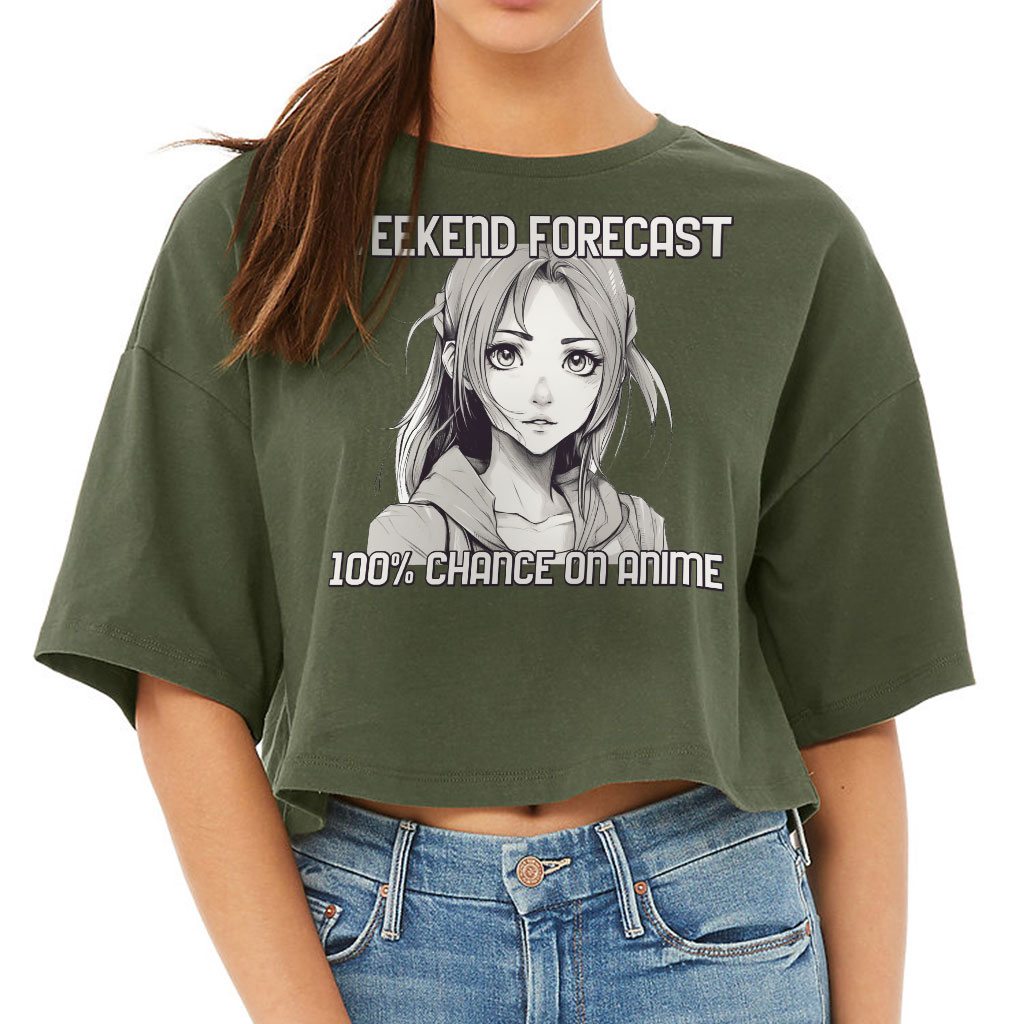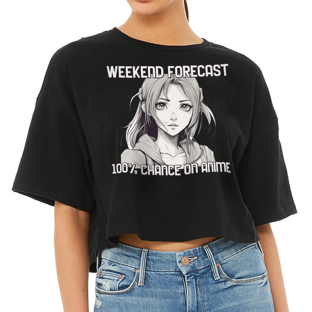 Weekend Forecast Women’s Crop Tee Shirt – Cool Gifts – Anime Lovers Items