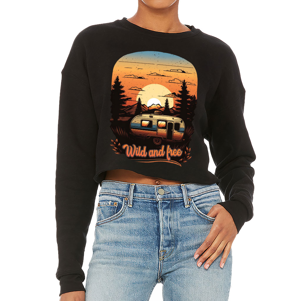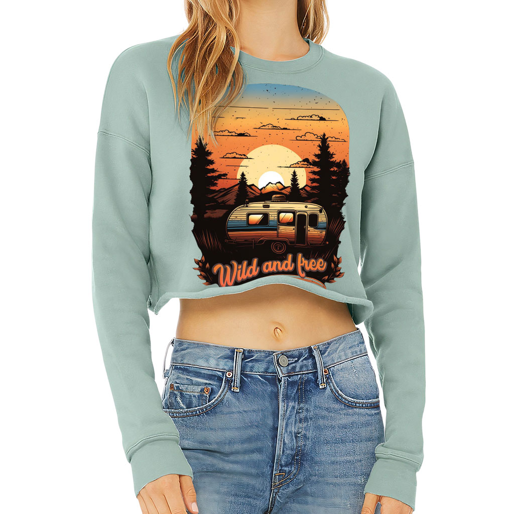 Wild and Free Cropped Sweatshirt – Retro Women’s Sweatshirt – Illustration Crop Crew Sweatshirt