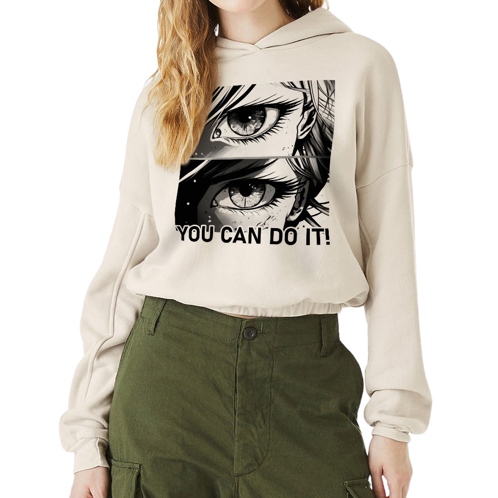 You Can Do It Cinched Bottom Hoodie – Inspirational Women’s Hoodie – Illustration Hooded Sweatshirt